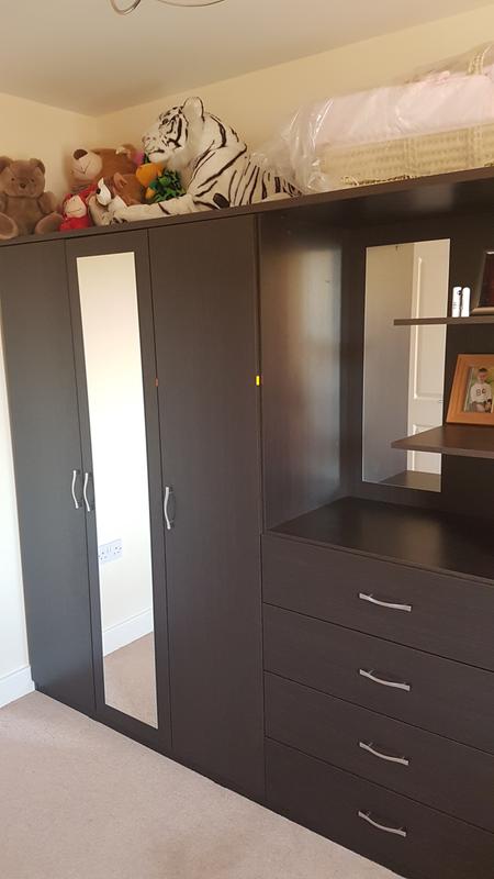 Peru 3 door 4 drawer mirrored combi wardrobe a great value for money combination of a 3 door wardrobe with full length mirror a chest of 4 drawers and a twin shelf module complete with vanity mirror.
